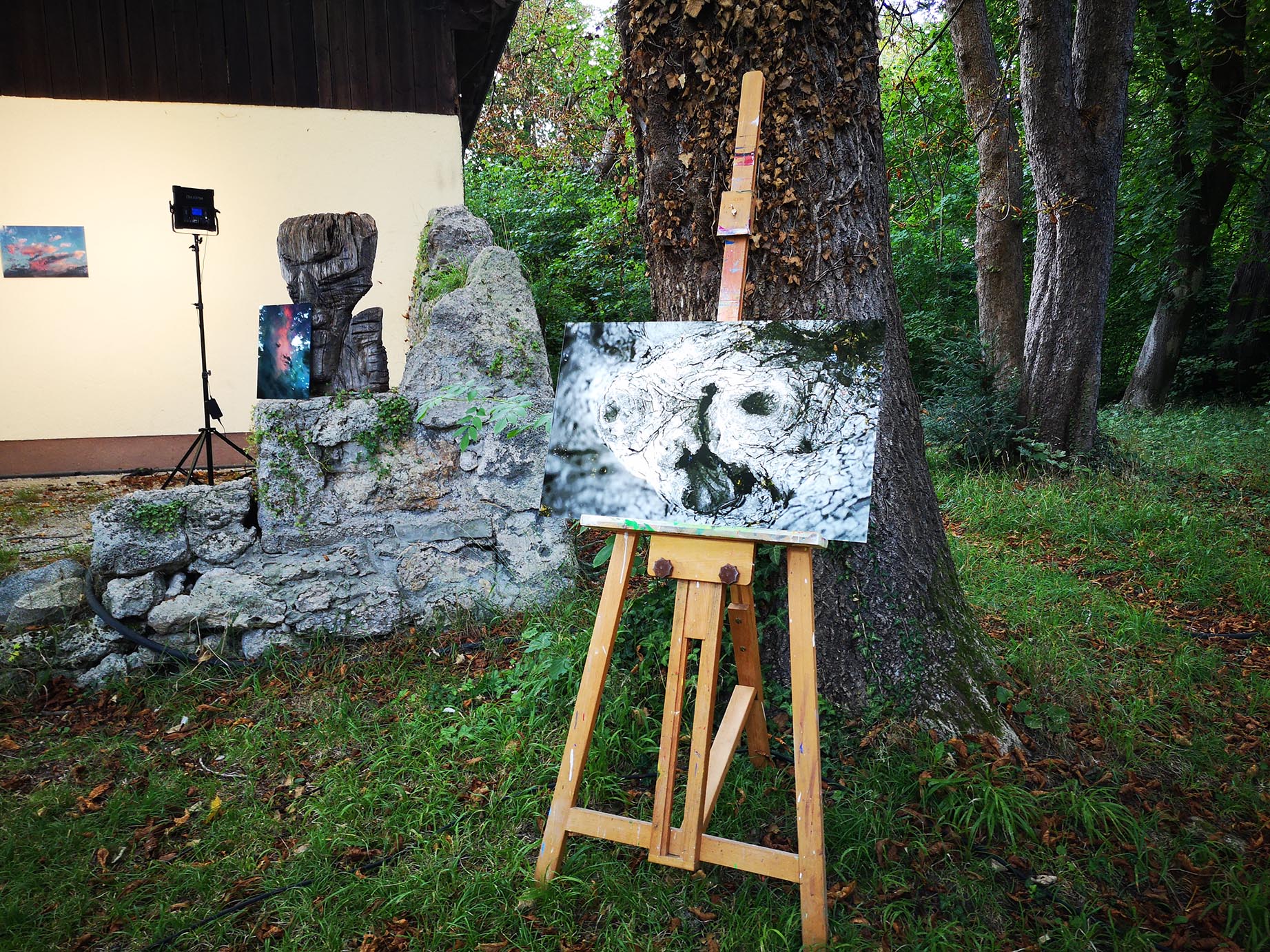 Das zentrale Motiv sind Bäume und im speziellen ihre Rinde. Die Rinde eines Baumes ist sichtbar gewordene stillstehende Zeit, aber nicht starr, sondern in ihrer Natur nach wie vor, wenn auch kaum wahrnehmbar, in Bewegung, strebend, sich ausgestaltend. In dieser Ausgestaltung nicht nur in Strukturen und Verwerfungen interessant, sondern vielmehr die gewachsene Erscheinung dessen, was der Künstler, vielleicht in Ermangelung eines besseren Begriffes, „Das Mysterium“ nennt.