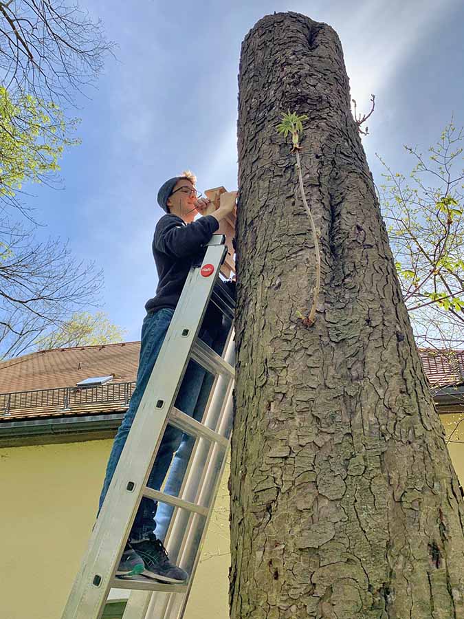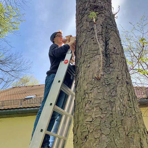 Um zumindest den Tieren die Wohnungssuche im gnadenlosen Münchner Immobilienmarkt zu erleichtern, hängen seit Juni diesen Jahres Fledermauskästen im Mohr-Villa Park.