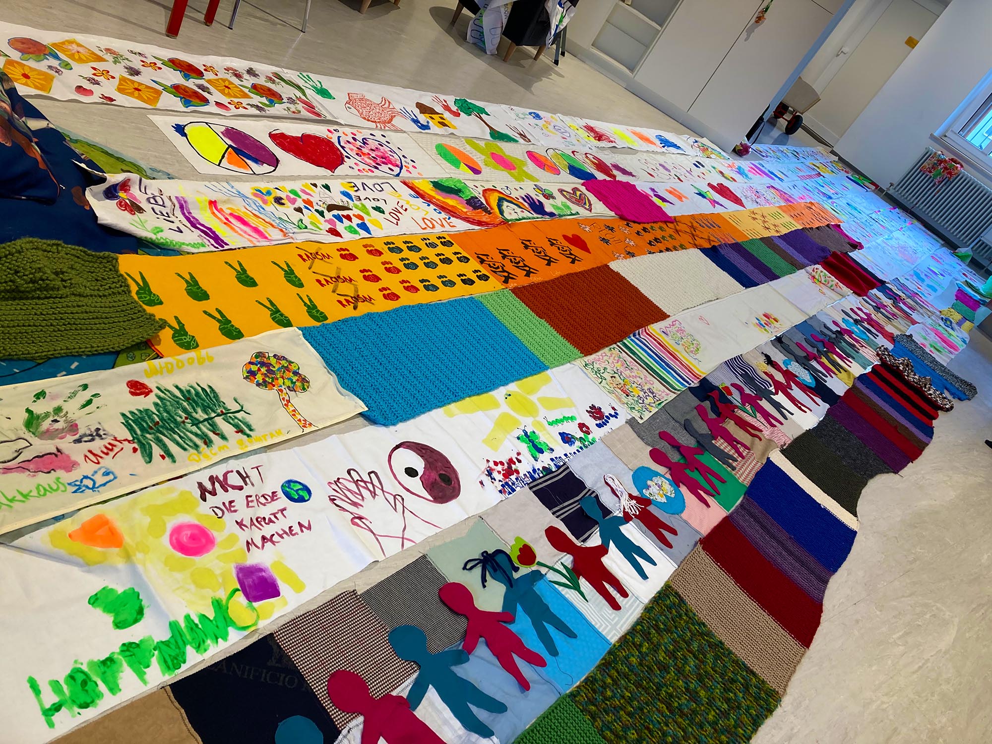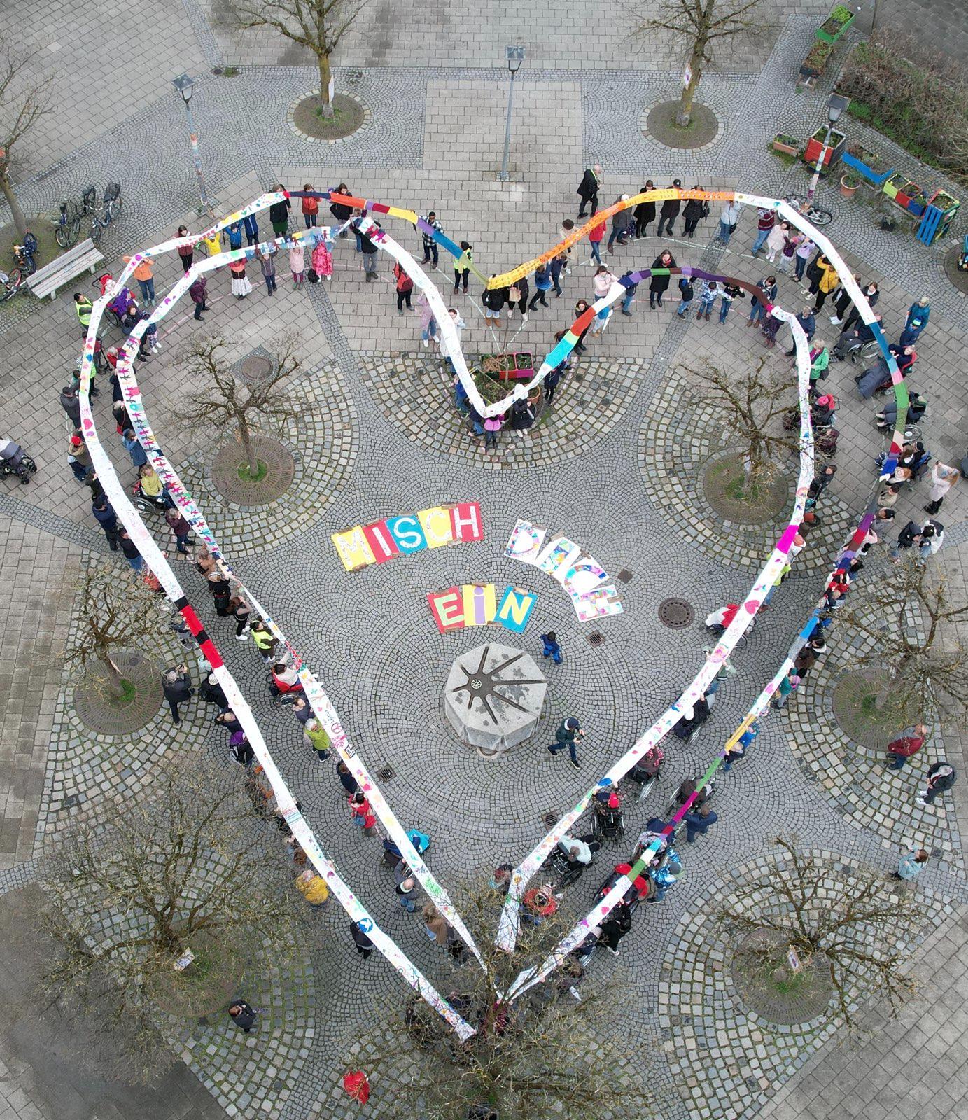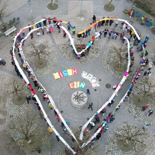 Dieses Jahr entstand ein langer bunter Schal als Symbol der Vielfalt und Toleranz, der uns alle verbindet. Teilstücke wurden dabei in den Einrichtungen gefertigt und schließlich bei einem Stadtteilfest zu einem langen Schal zusammengefügt.