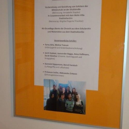 Das Ergebnis der historischen Spurensuche präsentiert die Ausstellung „Jugend im Nationalsozialismus“. Sie zeigt Schicksale von Kindern und Jugendlichen unter nationalsozialistischer Herrschaft – zwischen Faszination, Verfolgung und Widerstand. Sie wurde im Jahr 2012 von Schülerinnen und Schülern des Städtischen Bertolt-Brecht-Gymnasiums, des Städtischen Heinrich-Heine-Gymnasiums und des Städtischen Luisengymnasiums realisiert. Das NS-Dokumentationszentrum München, das Pädagogische Institut der Landeshauptstadt München und die Ausbildungsabteilung des Bayerischen Rundfunks haben das Projekt als Kooperationspartner unterstützt und begleitet.