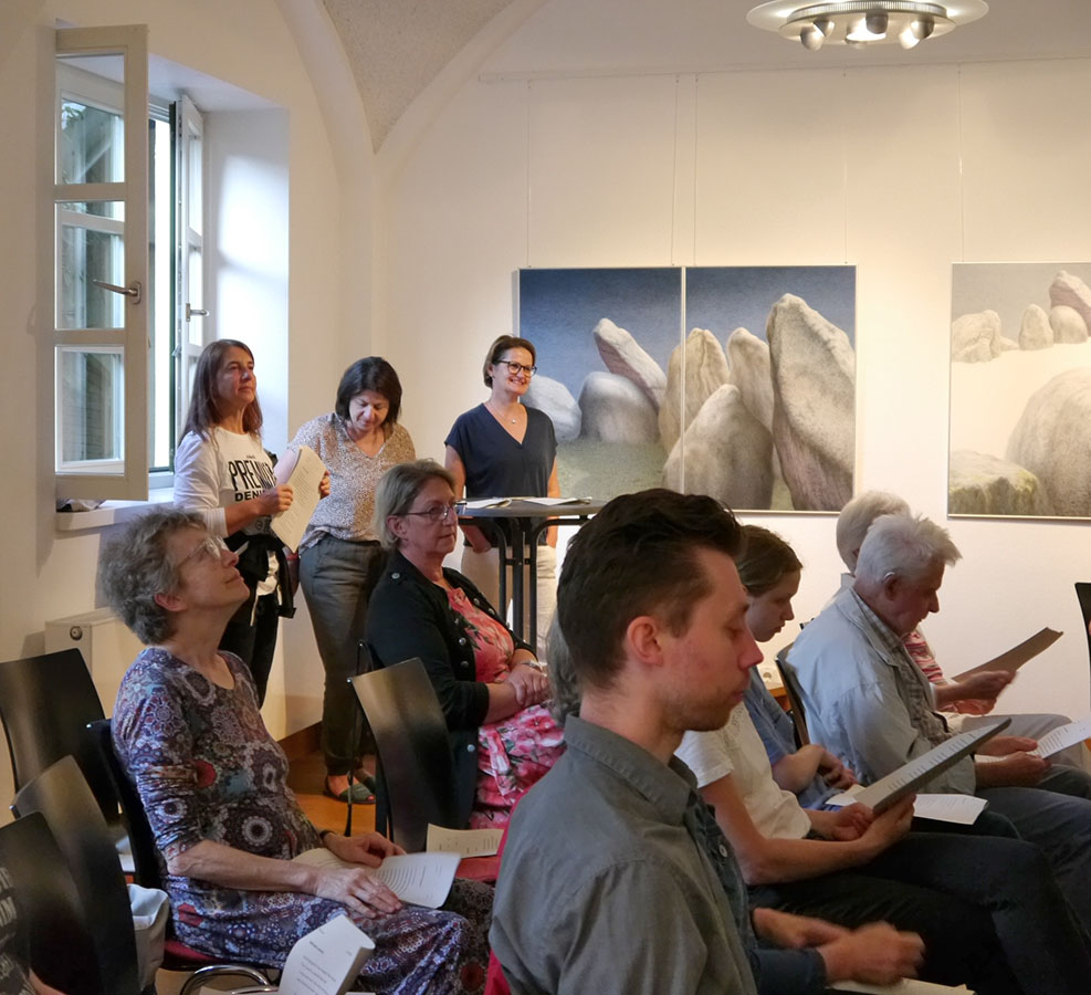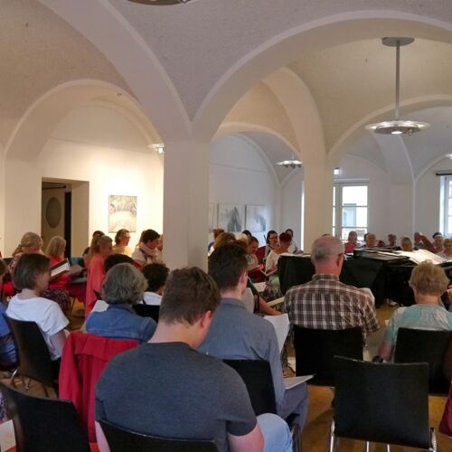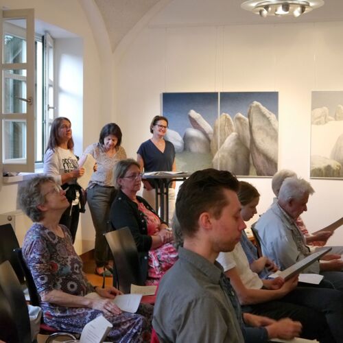 Das wünschen sich die Sängerinnen des Mohr-Villa-Chores beim Mitsingkonzert „Sing mit mir!“. Bekannte Melodien und Lieder laden zum gemeinsamen Musizieren ein. Dabei steht das aktive Mitwirken der Zuhörenden und das Miteinander im Mittelpunkt des Abends.